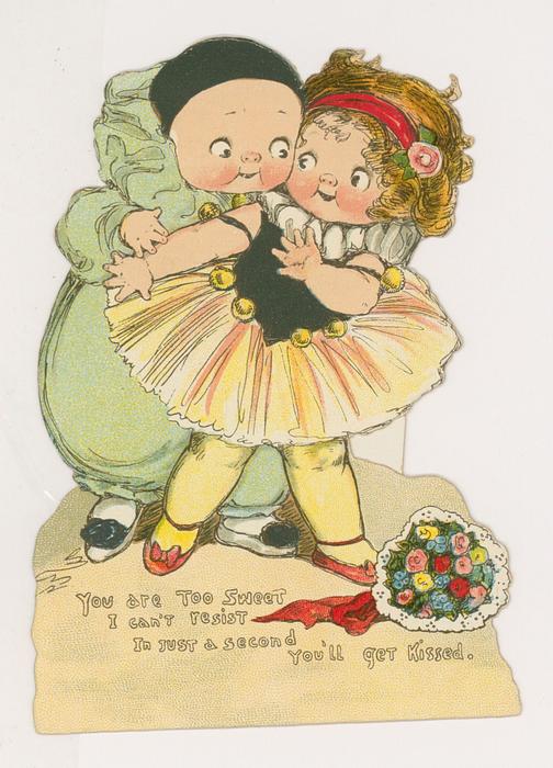 YOU ARE TOO SWEET I CAN'T RESIST IN JUST A SECOND YOU'LL GET KISSED. stand up card
