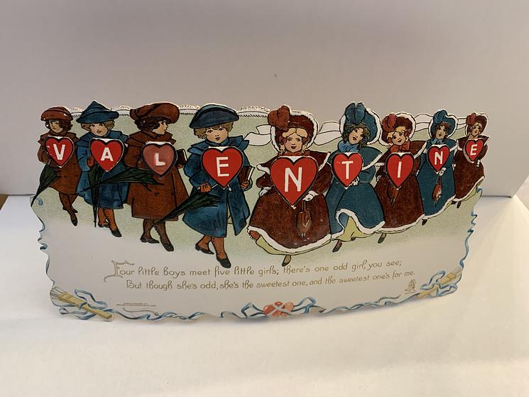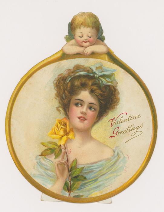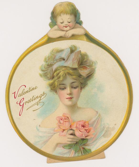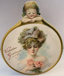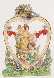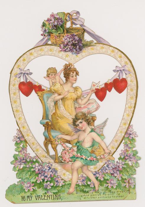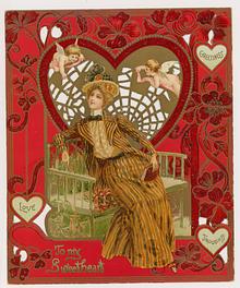 Valentine, glamor girl, spider web, cupids, stand up panel, R. Tuck circa 1905