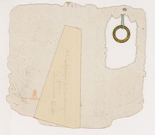 Cupid on horseback as a knight Tilting, ring is hanging in a perforated window and connected by a cord, stand up