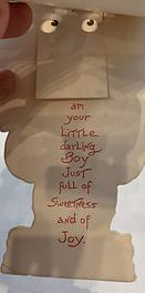 opens to say I AM YOUR LITTLE DARLING BOY, JUST FULL OF SWEETNESS AND JOY.