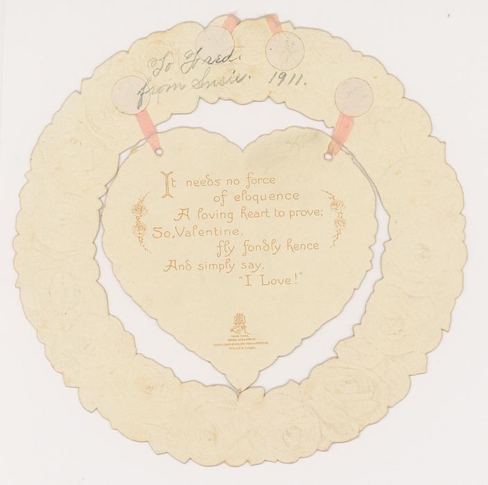 on the reverse IT NEEDS NO FORCE OF ELOQUENCE A LOVING HEART TO PROVE;