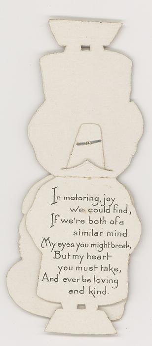 IN MOTORING, JOY WE COULD FIND, IF WE'RE BOTH OF A SIMILAR MIND. MY EYES YOU MIGHT BREAK, BUT MY HEART YOU MUST TAKE, AND EVER BE LOVING AND KIND.