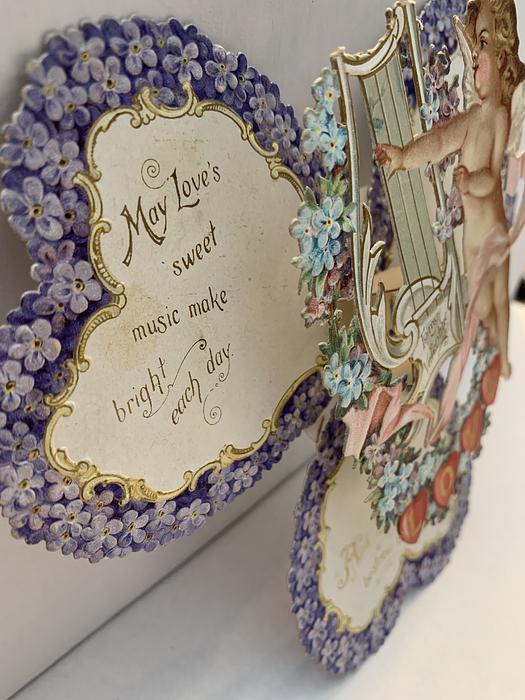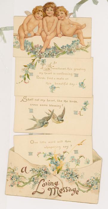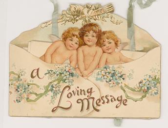 two side panel open to reveal the messages and an image of some cupids