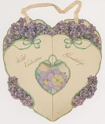 Valentine, heart shaped, floral, cloth flowers, foldout, Brundage glamour