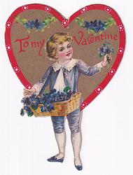 Valentine, heart shaped, gold background, red border, white flowers, children