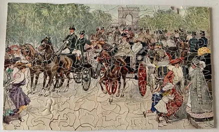 390 pieces, wooden, figurals, complete with one nib off but present, with box, push fit style, also listed as a 420 piece puzzle.