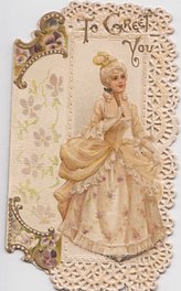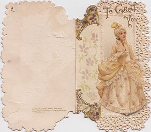 die-cut single sheet, single fold, serrated scalloped edges inside right:- A BRIGHT AND HAPPY NEW YEAR TO YOU -- "SALUTATION AND GREETINGS TO YOU" -- FROM