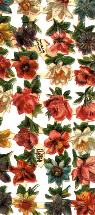 roses on stems designed as a fan to spread out, calendar months underneath the roses, hinged at base with a movable metal pin