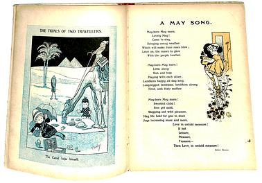 first story is GIRLS AND BOYS, colour plate is MOTHER GOOSE AT HOME, pictorial board covers