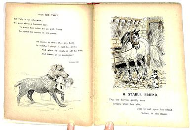 first story is THE DOG FROM NEXT DOOR, colour plate is OUR DEAR DOGGIES, pictorial board covers same front cover as WELCOME FRIENDS 828 but different colour plate, stories, and back cover