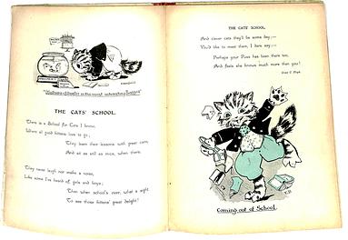 back cover image is of a little girl holding a cat under each arm by the artist Agnes Richardson