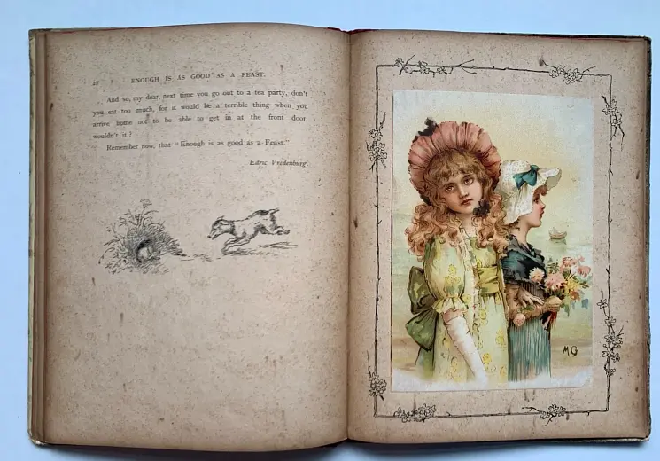 first story is ONE GOOD TURN DESERVES ANOTHER, has two colour plates pasted into ornate frame pages