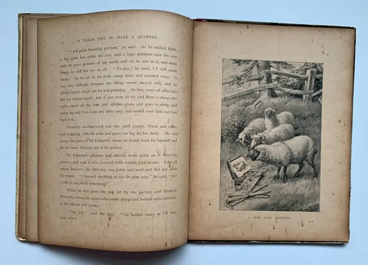 first story is GOOD SHEPHERD BRUE, colour plate is A SUDDEN SHOWER, same cover and title as SOMEBODY'S FRIENDS 809 but different story pictorial front cover and back cover contains listing of other GOLDEN GIFT books available
