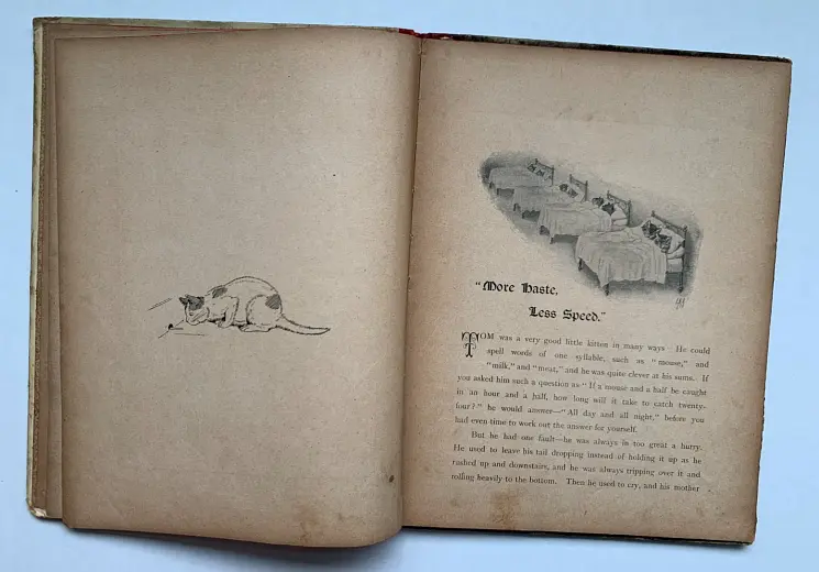 first story is TROTTY VECK AND HIS DAUGHTER MEG, contains twelve colour plates by FRANCES BRUNDAGE, comes with red or blue binding, pictorial front cover with illustrations of other Tuck books on back cover 104 pages