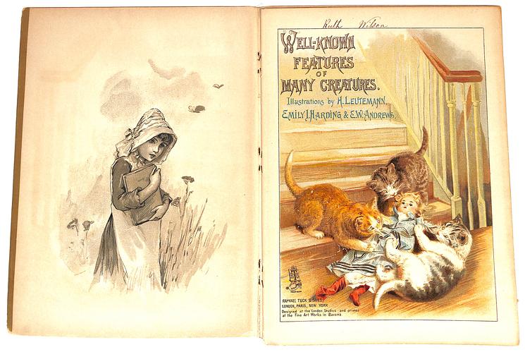Antique children's picture book, WELL KNOWN FEATURES OF MANY CREATURES, Tuck