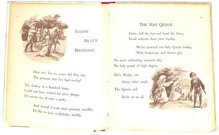 brown cloth covers with gold embossed title and image to front cover and spine, gold gilt to page edges, gift inscription for 1894, RAPHAEL TUCK & SONS, LONDON. PARIS. NEW YORK, PUBLISHERS TO HER MAJESTY THE QUEEN