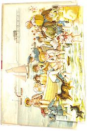 WITH PICTURES AND VERSES THE CHILDREN TO CHARM on title page, circa 1896, contains two pages of pop-ups, mechanical book, 16 pages, the same two pop-ups appear in PLAYTIME PICTURES but the other illustrations and verses are different