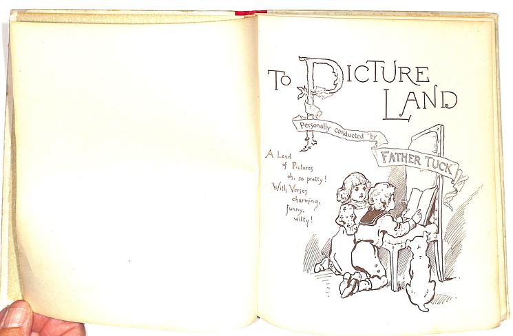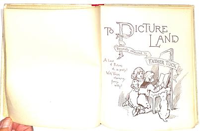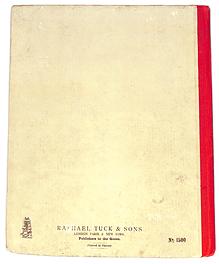 pictorial board covers with blue cloth spine binding, cream colored background, RAPHAEL TUCK & SONS, LONDON, PARIS AND NEW YORK. DESIGNED AT THE STUDIOS IN ENGLAND. PRINTED AT THE FINE ART WORKS IN BAVARIA.