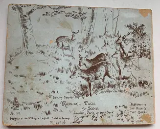 a look through picture type book, stamped SAMPLE ONLY NO COMMERCIAL VALUE, easel and palette A TUCK BOOK TRADEMARK, RAPHAEL TUCK & SONS LTD. FINE ART PUBLISHERS BY APPOINTMENT TO THE LATE KING GEORGE VI H.M. QUEEN ELIZABETH THE QUEEN MOTHER AND H.M. QUEEN MARY. COPYRIGHT PRINTED IN ENGLAND.