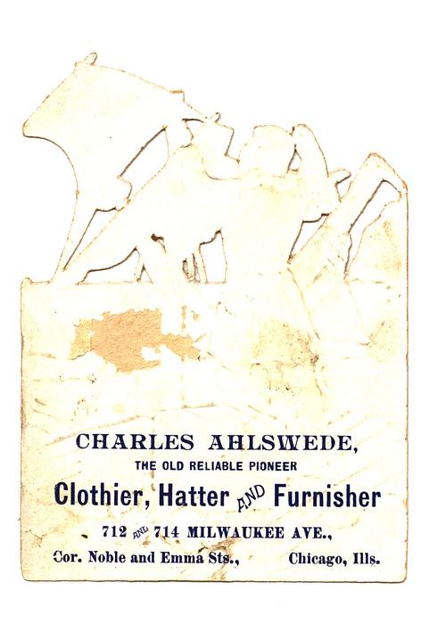 RAPHAEL TUCK & SONS. LONDON. PARIS. NEW YORK, DESIGNED IN ENGLAND. PRINTED IN GERMANY. comes with an advert for REX FLOUR from the ROYAL MILLING CO. MONTANA, or from COMPLIMENTS OF JOHN TORREY CO. MANUFACTURERS OF "STOVENE" A STOVE POLISH MIXED WITH OIL AND UNEXCELLED SHOE BLACKING. PORTSMOUTH, NEW HAMPSHIRE, and CHARLES SHLSWEDE, THE OLD RELIABLE PIONEER CLOTHIER, HATTER AND FURNISHER, 712 AND 714 MILWAUKEE AVE., COR. NOBLE AND EMMA STS, CHICAGO ILLINOIS. on the reverse of one panel