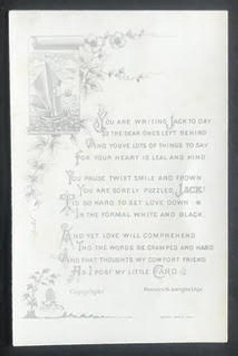 on reverse A HAPPY NEW YEAR TO YOU. CANNON TO THE RIGHT OF THEM. IN THIS DEAR LITTLE QUEER LITTLE GAME OF OUR LIFE,.....,
