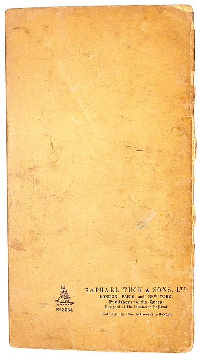 RAPHAEL TUCK & SONS LTD., LONDON, PARIS, BERLIN, NEW YORK. PUBLSIHERS TO THEIR MAJESTIES THE KING & QUEEN, & T.R.H.THE PRINCE & PRINCESS OF WALES. DESIGNED AT THE STUDIOS IN ENGLAND AND PRINTED AT THE FINE ART WORKS IN GERMANY.